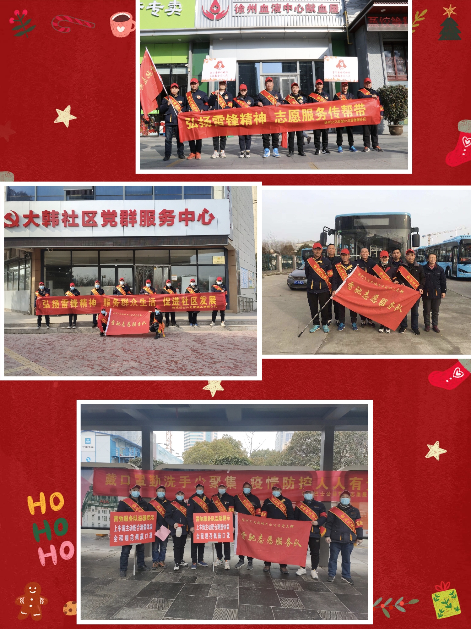 在這一年中,雷馳平安志愿服務(wù)隊秉承“弘揚雷鋒精神,秉持志愿服務(wù),傳承紅色文化”的精神,開展了形式多樣的志愿服務(wù):農(nóng)歷年春節(jié)前走進(jìn)社區(qū)寫春聯(lián)送溫暖;新冠病毒反復(fù)重卷而來,隊員們多次組織活動宣傳疫情注意事項,在不到一個月的時間內(nèi),三次協(xié)助社區(qū)和學(xué)校開展核酸采樣活動;賈汪馬莊村志愿服務(wù);雷鋒日走進(jìn)獻(xiàn)血屋愛心獻(xiàn)血;炎炎夏日服務(wù)中高考學(xué)子;打掃車場衛(wèi)生;到市區(qū)大站站臺服務(wù)乘客;節(jié)日去大龍湖保護(hù)環(huán)境服務(wù)游客;在徐州馬拉松比賽現(xiàn)場,為來徐的全國運動員提供友情服務(wù);快遞站幫扶快遞小哥;河南汛情之后迅速組織隊員,進(jìn)行防洪避災(zāi)知識宣傳;值五一勞動節(jié)帶著孩子們一起為環(huán)衛(wèi)工人送溫暖;七一前夕,組織黨員和隊友走進(jìn)站臺、車廂和火車站人流量大的地方,宣傳黨的歷史讓大家汲取前進(jìn)的力量;在9.9公益日向社會愛心人士籌善款為公益事業(yè)添磚加瓦;接近年底組織防詐反詐宣傳,讓市民朋友們守護(hù)好自己的錢袋子等等很多活動。