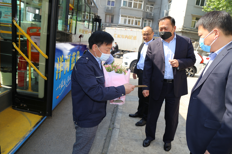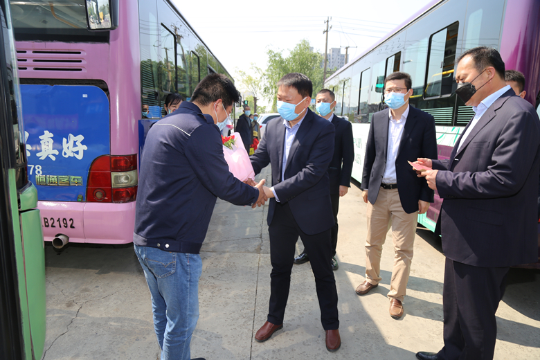 當(dāng)天上午,公交集團黨委書記、董事長杜紅軍,總經(jīng)理馮陸陸,常務(wù)副總經(jīng)理蔣成彪,副總經(jīng)理丁玉華帶隊分為四組,到14路、64路、10路等終點站、車場等處開展勞模標(biāo)兵走訪慰問活動,為韓杰、劉艷軍、楊鵬鵬、曹瑞國、劉委等11名市勞模,省、市五一勞動獎?wù)潞推髽I(yè)勞模送去了鮮花和節(jié)日慰問金。