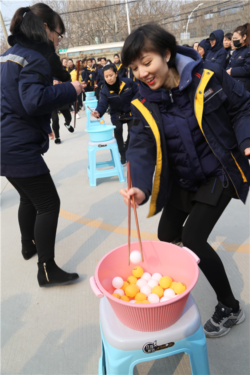 “穿針引線接力賽”和“夾乒乓球比賽”比較有意思,項(xiàng)目充分展現(xiàn)了女工們心思細(xì)膩的一面和嫻熟的家務(wù)活兒功底。手捏繡花針,穿針引線,筷子夾乒乓球,分明是練“炸丸子”嘛。參賽隊(duì)員情緒飽滿,勠力同心,密切配合,氣氛歡快熱烈而緊張,一場(chǎng)場(chǎng)精彩的比拼把運(yùn)動(dòng)會(huì)推向一個(gè)又一個(gè)高潮。尤其是最后一項(xiàng)“搶板凳比賽”,看誰反應(yīng)快,比誰會(huì)“搶”,快樂有趣,更是引來一次次加油喝彩,一波又一波歡聲笑語(yǔ)!