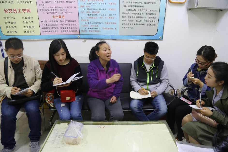 孫師傅發(fā)車了,通訊員們?cè)诟嚥稍L環(huán)節(jié),仔細(xì)觀察、記錄孫師傅在行車中的“一舉一動(dòng)”,尋找采訪細(xì)節(jié)。在孫師傅休停時(shí),大家紛紛拿出相機(jī)、手機(jī),切磋拍照經(jīng)驗(yàn)。為達(dá)到培訓(xùn)目的,采訪前要求通訊員們通過認(rèn)真思考,提前擬定好了采訪提綱,現(xiàn)場(chǎng)采訪環(huán)節(jié),通訊員們積極踴躍根據(jù)自己擬定好的問題對(duì)孫師傅提問,并認(rèn)真記錄。通訊員“現(xiàn)場(chǎng)練兵”在輕松愉快的氣氛中結(jié)束了,大家表示這種培訓(xùn)形式有趣有收獲。
