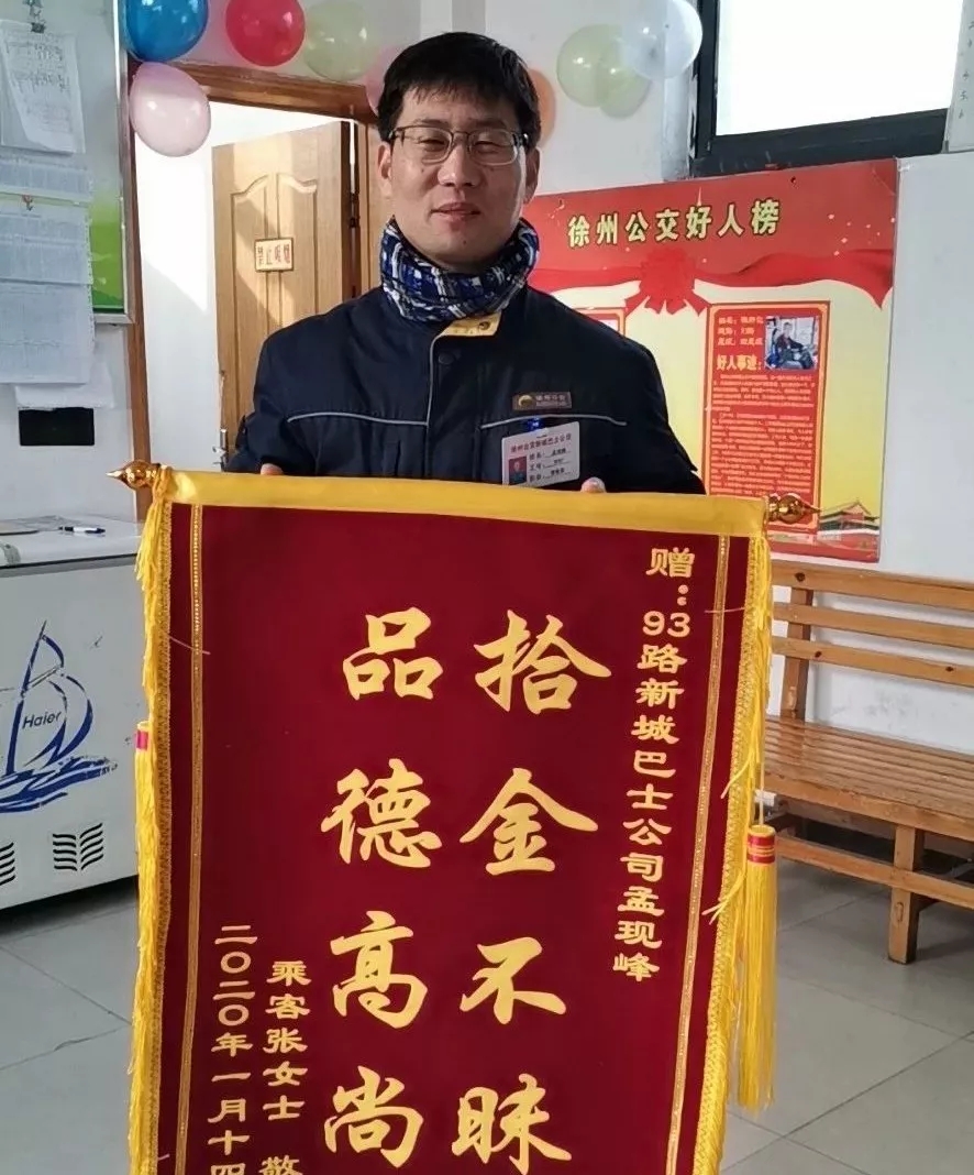 1月20日下午,張女士帶著錦旗專程來到調(diào)度室再次感謝孟師傅,并為公交駕駛員拾金不昧的精神點贊!