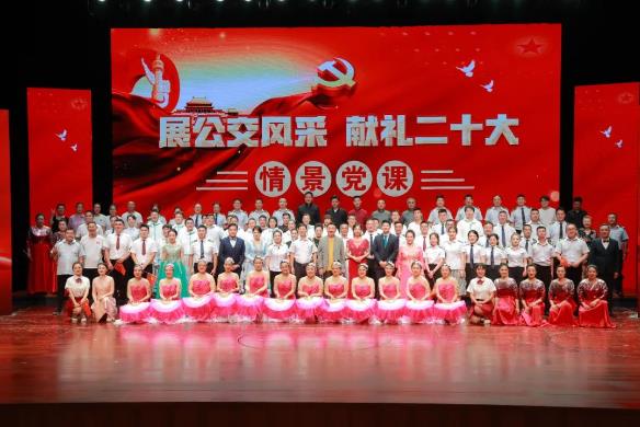 為激勵(lì)廣大黨員群眾以實(shí)際行動(dòng)迎接黨的二十大勝利召開,8月10日下午,徐州公交集團(tuán)成功舉辦“展公交風(fēng)采 獻(xiàn)禮二十大”情景黨課。市交控集團(tuán)黨委委員、紀(jì)委書記胡濤,市交通運(yùn)輸局宣傳教育處處長高夫健,徐州廣播電視傳媒集團(tuán)總編室主任劉建玲,市公交集團(tuán)外部董事,市交控集團(tuán)黨建工作部、群眾工作部部門領(lǐng)導(dǎo),以及公交集團(tuán)黨委班子成員、先進(jìn)勞模、職工代表共450余人出席并觀看演出。