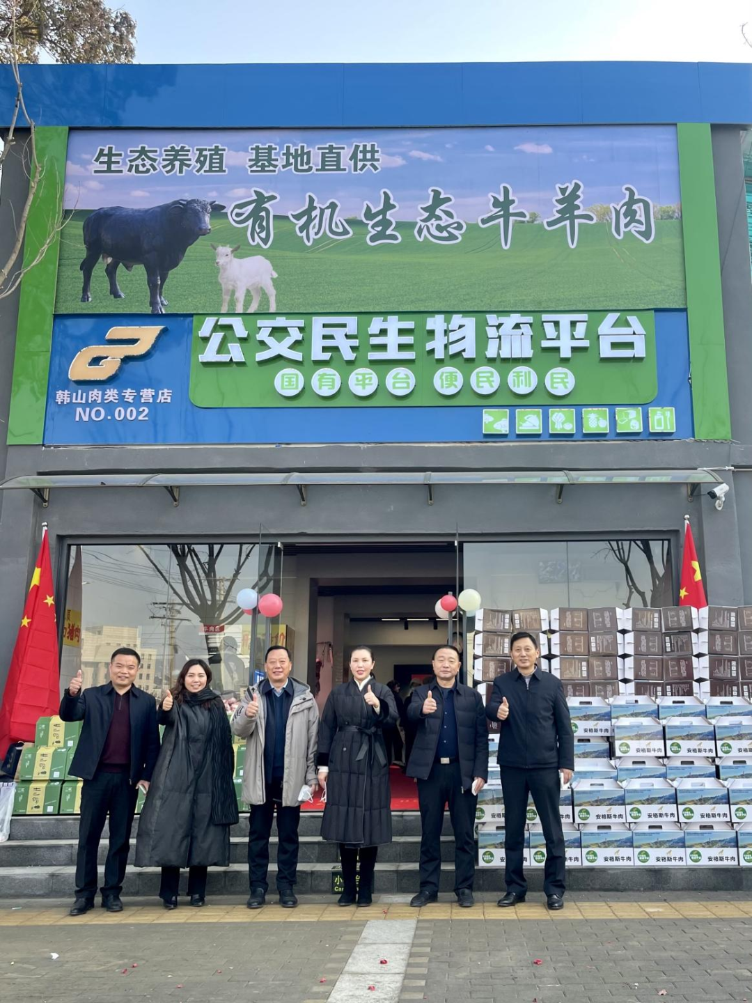 為進(jìn)一步保障周邊居民生活需求,方便廣大市民采購(gòu)生鮮肉品,1月8日上午,徐州公交民生物流平臺(tái)(韓山肉類專營(yíng)店)正式開業(yè)。開業(yè)當(dāng)天,公交集團(tuán)黨委副書記、總經(jīng)理袁夫松,黨委副書記、紀(jì)委書記、工會(huì)主席竇同銀,宿州草源牧業(yè)集團(tuán)公司董事長(zhǎng)馬良兵,徐州土巴豬生態(tài)農(nóng)業(yè)有限公司總經(jīng)理鄭紅梅一行到店祝賀。