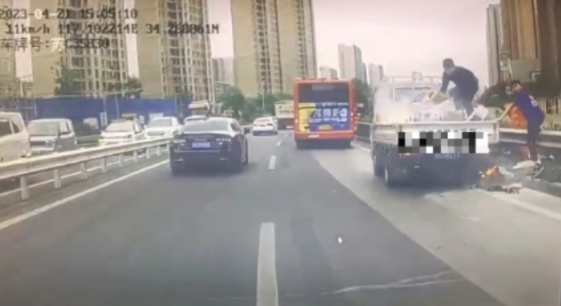4月21日中午,608路4名駕駛員石守軍、孫晉旭、郝科軍、郝允明駕駛著他們各自的車輛前往火花加氣站進(jìn)行加注燃料,就在返回的途中,忽然看到前方路邊白煙滾滾,當(dāng)距離再靠近一點(diǎn)時(shí)才發(fā)現(xiàn)竟然是一輛小型貨車車廂著火產(chǎn)生的陣陣煙霧,且已經(jīng)有幾個(gè)箱子開(kāi)始接連燃燒,小貨車駕駛員手里只有一瓶礦泉水,面對(duì)火勢(shì)即將控制不住,這僅有的一瓶水無(wú)疑是杯水車薪,無(wú)奈之下,貨車司機(jī)只能慢慢地將著火的紙箱搬下車廂。