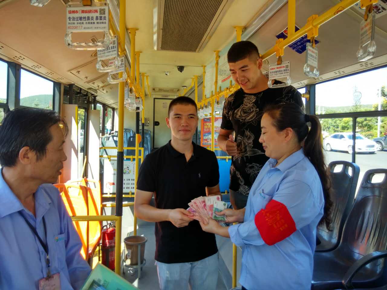 9月14日6點(diǎn)半左右,一位熱心市民在蘋果匯鄰灣站臺(tái)撿到一個(gè)文件袋交到游一路駕駛員張欣手中,文件袋內(nèi)裝有一本護(hù)照、一本學(xué)生證,人民幣4150元、美元450元。張欣把車輛駛?cè)氲V大南湖校區(qū)把文件袋交到夜間內(nèi)保人員手中并聯(lián)系車隊(duì)長(zhǎng)說(shuō)明情況。9月15日,游一線路長(zhǎng)王景文在多方聯(lián)系下找到了失主,失主是一名烏茲別克斯坦留學(xué)生,在礦大上學(xué),拿回文件袋失主表示自己真是太幸運(yùn)了。