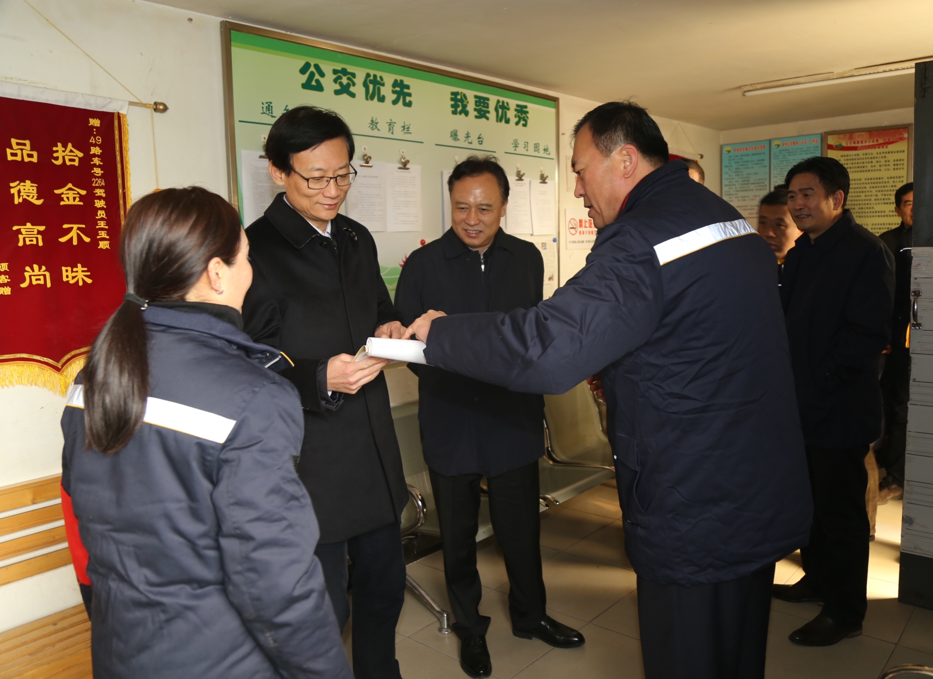 趙立群首先來到京徐公司76路、49路調(diào)度室,察看了調(diào)度室的工作環(huán)境和保暖措施,詳細(xì)詢問了駕駛員生產(chǎn)生活、用餐休息等情況。隨后,來到二級智能調(diào)度平臺(tái),認(rèn)真聽取了智能調(diào)度系統(tǒng)建設(shè)及運(yùn)行情況,平臺(tái)工作人員現(xiàn)場演示了系統(tǒng)中運(yùn)營調(diào)度、車輛定位、安全提示、實(shí)時(shí)監(jiān)控等操作,使其更直觀的了解智能調(diào)度系統(tǒng)的性能。最后,趙立群等一行又視察了保養(yǎng)車間,與修理人員進(jìn)行了親切的交談。