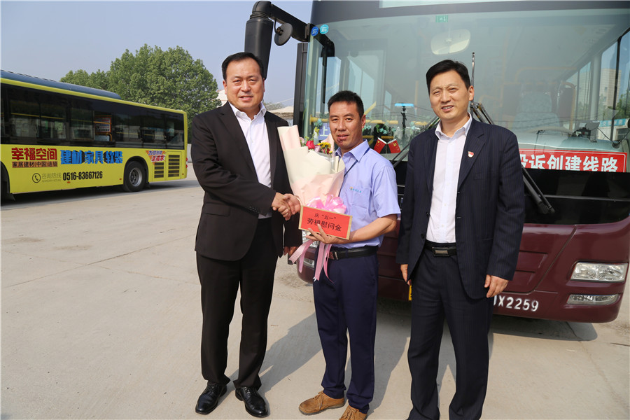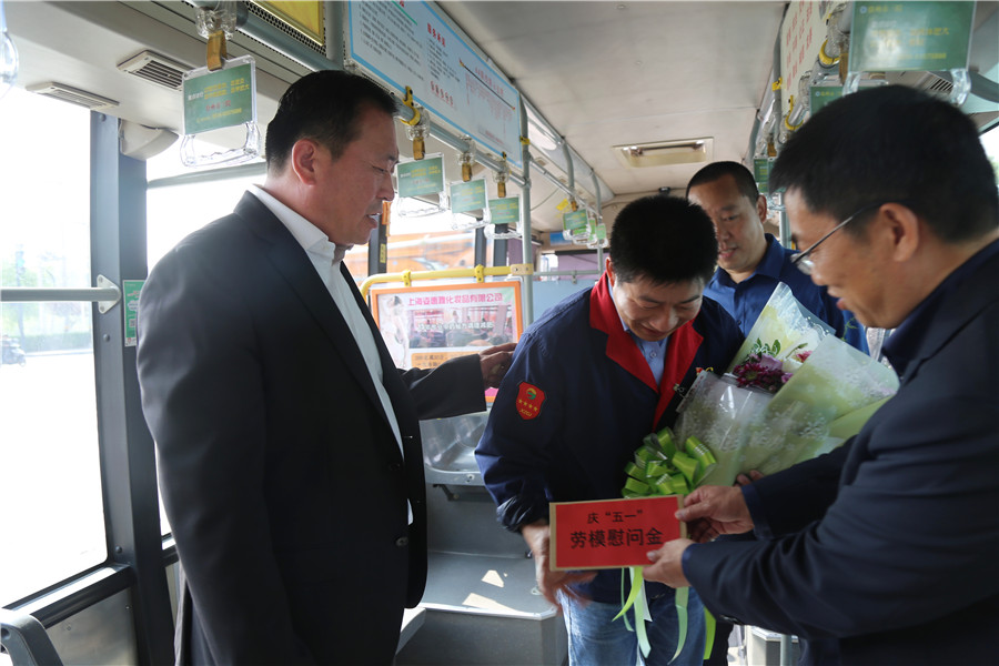 為更好地弘揚(yáng)勞模和工匠精神,體現(xiàn)對(duì)勞模的真切關(guān)懷,倡導(dǎo)全公司尊重勞模、學(xué)習(xí)勞模、爭(zhēng)當(dāng)勞模,4月27日上午,在“五一”國(guó)際勞動(dòng)節(jié)到來(lái)之際,公司董事長(zhǎng)、總經(jīng)理杜紅軍,常務(wù)副總經(jīng)理蔣成彪,副總經(jīng)理丁玉華、袁林、李修超、馮陸陸,工會(huì)主席竇同銀等領(lǐng)導(dǎo)分成三組,到運(yùn)營(yíng)一線把鮮花和慰問(wèn)金送到王博等7名公司勞模先進(jìn)手中,并向他們提前送去節(jié)日的問(wèn)候。