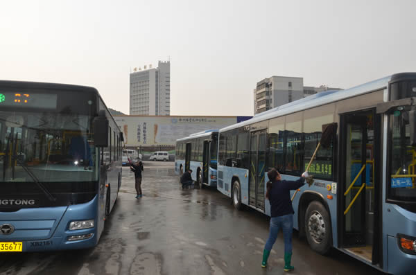 特別是雨后,所有管理人員、調(diào)度員、駕乘人員齊上陣,利用休停和晚收車后的時(shí)間,加班加點(diǎn)對(duì)2300多臺(tái)營(yíng)運(yùn)車輛和各公交首末站、停車場(chǎng)、調(diào)度室等環(huán)境衛(wèi)生進(jìn)行了徹底的衛(wèi)生大掃除,清理衛(wèi)生死角。由機(jī)關(guān)職能部室和服務(wù)督導(dǎo)隊(duì),以及各營(yíng)運(yùn)公司組成檢查組,每天都要在線路開展衛(wèi)生專項(xiàng)檢查。針對(duì)檢查中發(fā)現(xiàn)的問題限期整改,責(zé)任到人。徐州公交在每臺(tái)車的前擋風(fēng)玻璃處放置了創(chuàng)衛(wèi)標(biāo)語,在公交首末站懸掛創(chuàng)衛(wèi)標(biāo)語37個(gè),在700多臺(tái)公交車載電視中滾動(dòng)播出創(chuàng)衛(wèi)宣傳片,制作了創(chuàng)衛(wèi)健康宣傳專版30多個(gè),在每個(gè)調(diào)度室張貼了《中國(guó)公民健康素養(yǎng)66條》,在所有停車場(chǎng)、辦公區(qū)域、車廂內(nèi)張貼了禁煙標(biāo)識(shí)。